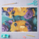 Ce tableau à texture rapprochée présente deux oiseaux, peut-être des chouettes, qui se font face. Les oiseaux sont représentés par des traits épais et tourbillonnants de peinture jaune et violette vibrante, créant une sensation impressionniste. Leurs yeux sont détaillés et réalistes, contrastant avec le rendu abstrait de leurs plumes. L'arrière - plan présente des tons turquoises et bleus, en plus des tons jaune et violet. Cette utilisation dynamique de la couleur et de la texture rend l'oeuvre captivante et unique.