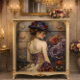 Cette composition captivante témoigne d'une attention magistrale aux détails de la mode victorienne à travers une étonnante interaction de textures de tissu et de tons de bijoux. La construction du corset est réalisée avec une précision exquise, avec un dégradé sophistiqué allant de la soie de prune au cuivre poli, orné de roses violets et pourpres parfaitement placés. La cascade dramatique de turbulences en ivoire crée un contraste fascinant par rapport aux tons plus profonds. L'artiste fait preuve d'une compétence exceptionnelle dans la capture des différentes textures de tissu - du plissage croustillant de l'agitation d'ivoire à la brillance lumineuse du corset de soie. L'arrière - plan atmosphérique moody, avec son mélange de dômes profonds et de reflets dorés, crée de la profondeur tout en mettant l'accent sur la silhouette dramatique. Jumeaux de couleurs parfaits : Perle d'ivoire et prune royale Cuivre brun et violet foncé Or et vin rouge brouillard Turquoise et rose poussiéreux Mauve et crème victorienne Captivant Éléments de design : Corset complexe détails Ruffles à bulles en cascade Roses Composition casquette dramatique Éclairage atmosphérique Meubles idéaux Transformations : Portes de l'armoire Bijoux armoire faces Armoires de chambre en Poudre Façades de poitrine victorienne Ce design transforme les meubles en points focaux romantiques dignes d'un salon parisien. La palette de couleurs sophistiquée et la composition dynamique font de chaque pièce un gage d'élégance, parfait pour ajouter une touche dramatique aux vestiaires, boudoirs ou salons formels. L'attention magistrale portée aux détails historiques et aux éléments luxueux de l'oeuvre élève le mobilier ordinaire en pièces de conversation extraordinaires qui captent l'essence de la haute couture victorienne tout en conservant un charme intemporel.