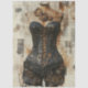 steampunk corset decoupage, gearwork mannequin craft paper, industrial fashion art print, RHDesigns paper, mixed media gothic collage, newspaper texture background, brass laced corset design, mechanical fashion decor, vintage mannequin steampunk paper, vertical plaque gear design