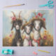 Cette belle image présente deux adorables chèvres habillées d'accessoires de charme. La chèvre à gauche porte une belle couronne de fleurs rose et jaune et tient un bâton dans sa bouche, ajoutant une touche ludique. La chèvre sur la droite, partiellement obscurcie, est ornée d'un foulard élégant et d'une cloche, sertie sur un fond de ciel bleu avec des nuages moelleux et entourée de fleurs vibrantes. Cette scène fantaisiste et chaleureuse saisit l'essence de la mode et de la créativité des animaux de ferme, ce qui en fait un endroit parfait pour ajouter une touche de plaisir et de charme à toute collection. Créée par RHDesigns de 2chattychicks, cette oeuvre d'art est idéale pour l'utilisation sur sacs fourre-tout en toile, posters et décors maison.