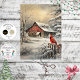 Papier Mousseline Decoupage Winter Scene Red Barn Cardinal Snow