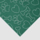 Dog paws, hearts and bones. White pattern on green background. Custom tissue paper for dog lovers and their dogs.