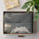 Dreadlock Duke est une scène charmante d'un bulldog assis dans une chaise de coiffeur classique, face à un miroir avec de longs cadenas blancs en cascade sur la chaise. L'ensemble rappelle un salon de coiffure à l'ancienne, avec des cadres au mur, un lavabo avec miroir et du carrelage au sol. Cette représentation anthropomorphique du bulldog, placée dans un scénario de toilettage typiquement humain, ajoute une touche humoristique à l'image, puisque le chien semble admirer sa propre réflexion et sa coiffure unique. C’est un visuel ludique et créatif qui mêle les mondes des animaux domestiques et des gens d’une manière attachante.