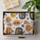 Habille tes cadeaux avec ce charmant papier citrouille ! Le design est composé d'un motif festif de lanternes jack-o-lanternes classiques dans les tons orange et bleu foncé, parsemé d'étoiles fantaisistes et de feuillage. C'est la façon idéale d'ajouter une touche de charme d'Halloween rustique à n'importe quel sac cadeau ou boîte.