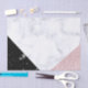 Design géométrique moderne avec parties scintillant d'or imitation rose, marbre blanc et noir.