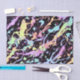 Vibe rétro des années 90 de graffitis énergiques éclaboussés et un dégradé d'arc-en-ciel imitant l'holographie douce.