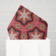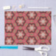 Design de papier de tissu moderne avec des fleurs géométriques blanches et des formes sur un arrière - plan rouge clair.