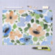 Papier Mousseline Fleurs partout, Pêche, Bleu, Aquarelle verte