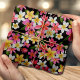 La plumeria tropicale fleurit en rose, jaune et blanc sur un papier arrière - plan noir - idéal pour les mariages, les douches nuptiales, les anniversaires et plus encore.