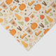 Ce design présente un motif délicieux thème automne rempli d'éléments d'automne douillets. Le design comprend des illustrations de citrouilles, des tranches de tarte citrouille garnies de crème fouettée, des boissons chaudes en tasses à emporter et des courges de noix de beurre. On y trouve des bâtons de cannelle, de l'anis étoilé, des sprigs de verdure, des feuilles d'automne, des glands et de petites baies, le tout dressé contre un arrière - plan crème tendre. La motif dégage une atmosphère chaleureuse et accueillante, parfaite pour célébrer les saveurs et les couleurs de la saison d'automne.
