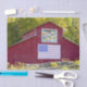 Grande grange américaine rouge avec le drapeau américain et plaques d'immatriculation de différents états.