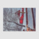 Papier Mousseline Grange rouge neige avec lumières de Noël sur la cl