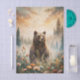 Papier Mousseline Grizzly Bear in a Forest Meadow with Flowers