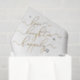 Un excellent ajout à l'emballage de votre cadeau de fête de fiançailles, ce papier de soie personnalisé noir, blanc et or 'Pour l'amour, les rires et heureux pour toujours' sera certainement apprécié ! Sur fond blanc, le sentiment heureux pour toujours est rendu dans une belle calligraphie à la main en faux or. Les noms et le reste du texte sont dans une police sans serif noire chic, pour un design sophistiqué. Ce papier de soie fait partie d'un ensemble coordonné, alors assurez-vous de regarder dans la collection ci-dessous pour plus de produits coordonnés dans ce thème.