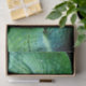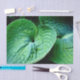 Des feuilles hosta verdoyants qui scintillent avec des gouttes de rosée font un papier de tissu étonnant. Ce serait idéal pour envelopper un cadeau pour un amoureux de la nature, jardinier, paysagiste, etc.