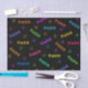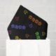Un motif pour amoureux de les chats avec le mot "miaou" écrit avec une police empreinte de patte dans un arc-en-ciel de couleurs sur un arrière - plan noir. De mignons visages de chatte colorés complètent le design. Le dos est noir solide mais peut être changé en n'importe quelle couleur avec l'outil de conception.
