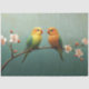 Ce charmant tableau présente une paire d'inséparables perchés sur une délicate branche rose fleurie, symbolisant romantisme et convivialité. Les tons pastel doux et les détails complexes créent une atmosphère romantique et rêveuse, parfaite pour les amoureux de la nature et des oiseaux.