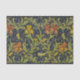 Ce dessin est l'impression d'un dessin de tissu créé par l'artiste britannique William Morris (1834-1896), associé au Mouvement des arts et de l'artisanat. Il représente des fleurs d'iris bleu et orange dans un motif symétrique élégant. La fleur porte le nom d'Iris, déesse grecque de l'arc-en-ciel et messager des dieux Olympiens, transportant des messages vers l'humanité. Les feuilles et les tiges des plantes de l'iris sont représentés en bleu et vert. Il y a quelques oiseaux jaunes perchés sur certains feuillage des plantes. Le motif original a été conçu par William Morris en 1887.