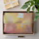 Un tableau abstrait contemporain aux couleurs chaudes. ocre jaune, rose, orange brûlé et crème. Art original de Nic Squirrell.