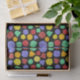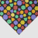 Ce papier de tissu à motifs colorés est parfait pour envelopper les cadeaux pour les fans de jeu de rôle et de jeux de société d'imaginaires. Il présente des illustrations de différents dés multifaces en vert, violet, orange, rouge et jaune contre un arrière - plan noir.