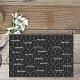 Ces feuilles de papier de tissu ont une image en noir et blanc avec un thème musical de notes de musique blanche sur un arrière - plan noir avec le texte Joyeux Anniversaire éparpillé partout.