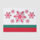 Le design comprend des flocons de neige stylisés en rouge et du ruban vert plaid sur un arrière - plan rouge