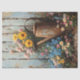 Papier de tissu découpage avec une charmante peinture d'un arrosoir rustique rempli de fleurs sauvages, parfait pour ajouter une touche de beauté rurale et de style vintage à vos projets d'artisanat.
