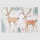 Papier Mousseline Le Cerf D'Aquarelle En Forêt D'Hiver Noël