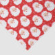Des illustrations de style vintage d'un visage de Père Noël portant un chapeau de Père Noël rose sont dressées contre un arrière - plan rouge à motifs sur ce papier de tissu avec un look rétro.
