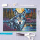 Papier Mousseline Loup gris dans la forêt en verre tendu