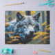 Papier Mousseline Loup gris en forêt dorée