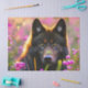 beau loup noir en fleurs roses Ai Généré Art par minx267