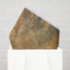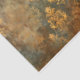 C'est un motif décoratif orné dans les tons or, turquoise et rouille. Le design présente des motifs complexes et symétriques de damas ou d'arabesques qui ressemblent à des feuilles d'acanthus stylisés, des rouleaux et des éléments floraux disposés en colonnes verticales. Les motifs ont un aspect triste, patiné avec des zones défraîchies et usées, révélant turquoise et rouille sous la couche dorée. Cet effet de patine vieilli donne au design une atmosphère antique ou vintage.