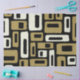 Retro Mid-Century Abstrait moderne Motif noir blanc & or.