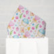 Tissu papier avec un motif délicieux et fantaisiste. Coeurs, lettres d'amour, muffins, tulipes et cerises apportent joie et bonheur à ce mignon petit motif. Jolies couleurs pastel.
