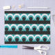 Geometric pattern illustration with stripes, circles and round shapes in turquoise, black and white colors