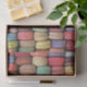 Ces confections françaises sucrées à base de meringue sont remplies d'un centre savoureux pour créer un sandwich aux biscuits délicieusement sucrés. Cet arc-en-ciel empilé de couleurs signifie différentes friandises de saveur! Cette image a une légère impression "peinte" quand vous regardez de près.