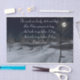 Papier-cadeau avec l'image d'un bois enneigé sur une nuit éclairée par la lune et un verset du poème de Robert Frost, "Stopping by Woods on a Snowy Evening".