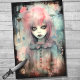 Elevez votre artisanat avec notre papier de découpage avec une jeune fille éffrayante dans l'hypnotiser l'art altéré. Le look rose et aqua grunge ajoute une touche de mystique, parfait pour créer des projets Pastelloween uniques et captivants.