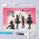 Papier de tissus avec silhouettes de jeunes danseurs de ballet contre une lune et ciel étoilé rose.
