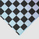 Papier de tissu bleu et violet avec motif à damiers noir pour découpage et artisanat et mobilier upcycling.