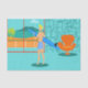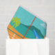 Chaque jour peut être une journée à la plage avec ce Retro Surfer Dude Tissue Paper. Le style des années 1960, minimaliste design d'art, est doté d'un mec surfeur baisé au soleil, blond et prêt à attraper une vague. Notre surfeur en forme regarde l'océan à travers les portes coulissantes en verre de sa maison en bord de plage. Il se tient dans son salon couleur aqua. Nous pouvons voir un aqua et turquoise, mur en pierre et fauteuil orange moderne du milieu du siècle. De l'autre côté de la porte vitrée, on aperçoit un patio. Au-delà se trouve une plage de sable doré, un palmier balançant, un océan bleu paon étincelant et un ciel d'aqua. Au loin, on peut voir une île volcanique turquoise, qui est dormante pour le moment. Surfer Dude tient une planche de surf bleue et porte des shorts de planche à motifs de tiki bleu. Attrapez quelques vagues et partagez un peu d'amour avec ce design d'été kitsch!