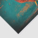 Papier de tissus avec l'image d'un coq coloré contre un arrière - plan en brique bleue.