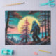 Sasquatch coloré marchant sur la montagne sous une pleine lune IA Art généré par minx267