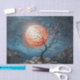 Papier Mousseline Paysage en mosaïque avec soleil rouge et cerisier