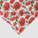 Tissus papier dans un motif délicat de pavots rouges vibrants avec des tiges vertes profondes et des feuilles, sur un certain temps arrière - plan, avec, chaque fleur de pavot unique courbé et tordu, comme si se balançant doucement dans la brise.