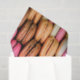 Pile de macarons délicieux et colorés sur le papier de soie de soie d'amusement.