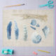 Papier Mousseline Plage Ocean Sea Shells Plumes Découpage bleu