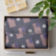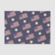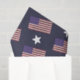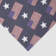 Puisse le drapeau jamais agiter avec ce papier de tissu patriotique. L'arrière - plan est bleu avec des étoiles blanches et des drapeaux américains de couleur vintage avec les mots de l'engagement d'allégeance écrit sur les bandes rouges.