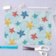 Starfish de rouge, bleu et jaune, le jaune avec les yeux et sourit dans une mer d'eau bleue tourbillonnant de l'océan ! Mélangez et égalez ce motif à thème océan avec nos autres motifs océaniques pour de superbes combinaisons!